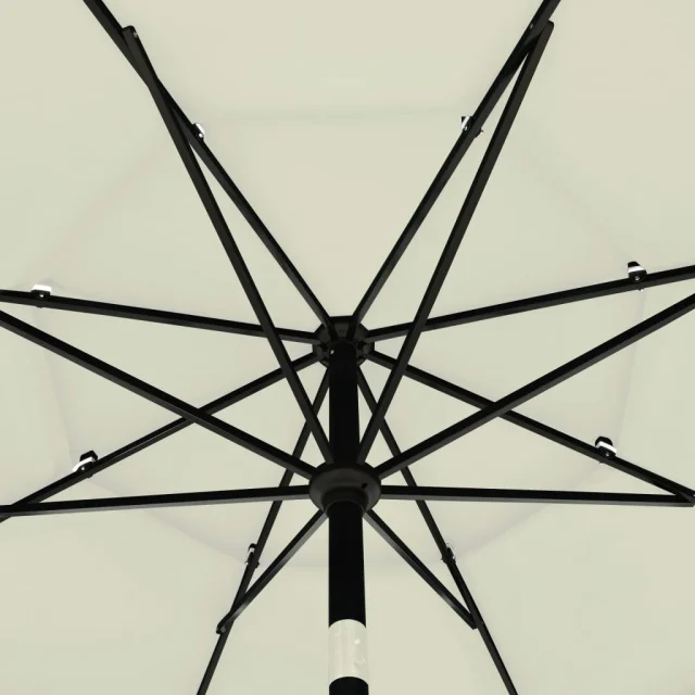Zunanji senčnik je izdelan iz nebledljivega poliestra z UV zaščito, zato lahko zagotovi optimalno zaščito pred soncem. Prašno premazan aluminijast drog in rebra zagotavljajo stabilnost. Zahvaljujoč ročici in možnosti nagibanja je senčnik zložljiv in prenosen. Postavite ga lahko na podstavek za senčnik ali na sredino mize, če ima odprtino za senčnik.