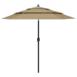 Zunanji senčnik je izdelan iz nebledljivega poliestra z UV zaščito, zato lahko zagotovi optimalno zaščito pred soncem. Prašno premazan aluminijast drog in rebra zagotavljajo stabilnost. Zahvaljujoč ročici in možnosti nagibanja je senčnik zložljiv in prenosen. Postavite ga lahko na podstavek za senčnik ali na sredino mize, če ima odprtino za senčnik.