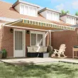 Ta ročno zložljiva tenda združuje super funkcionalnost s sodobnim videzom. Njene živahne zelene in rumene barve skupaj s klasičnimi črtami ustvarijo fantastično senčeno mesto na tvojem balkonu ali terasi. Ko pride poletje, boš navdušen nad tem, kako enostavno jo lahko potegneš ven, ko potrebuješ zaščito pred soncem. S svojo velikostjo 4,5 x 3 metra ti nudi prijetno senco, kar je popolno za poživitev tvojega zunanjega okolja in podaljšanje tvojega sproščanja.