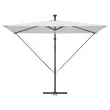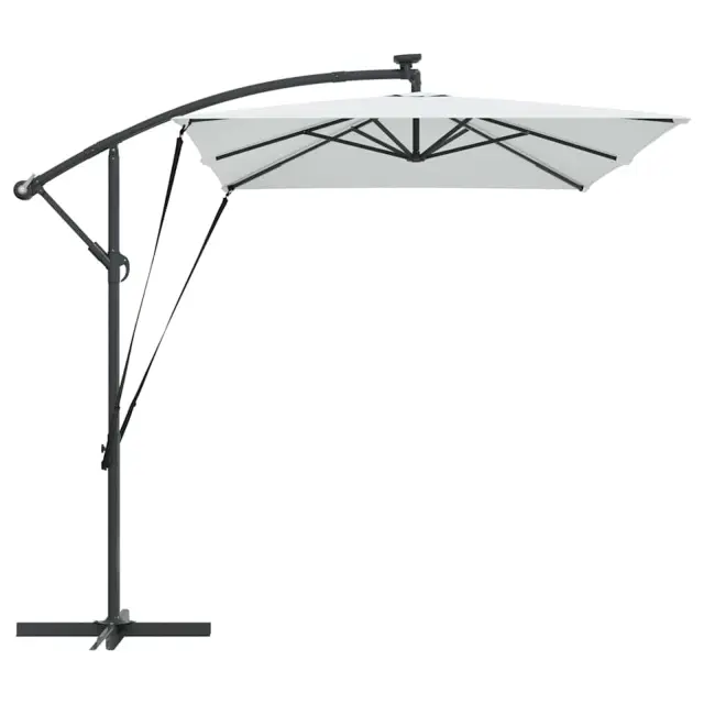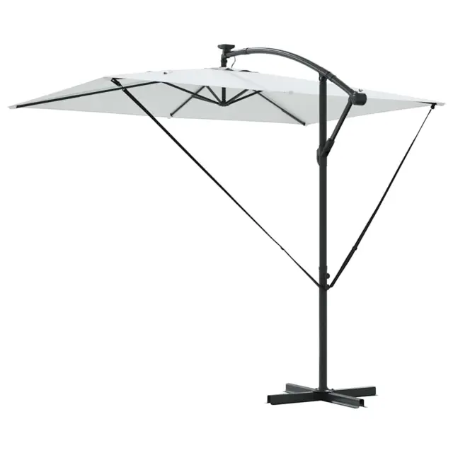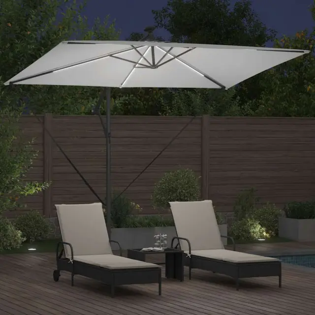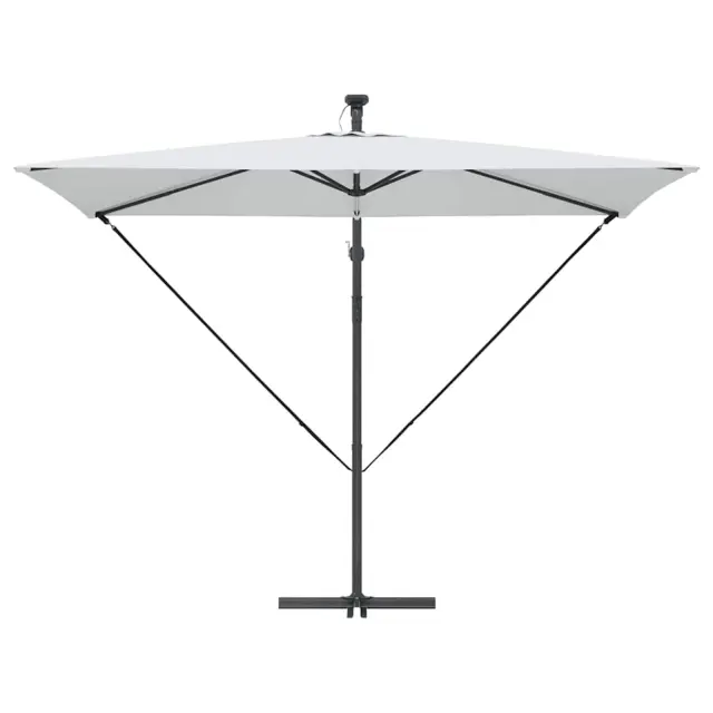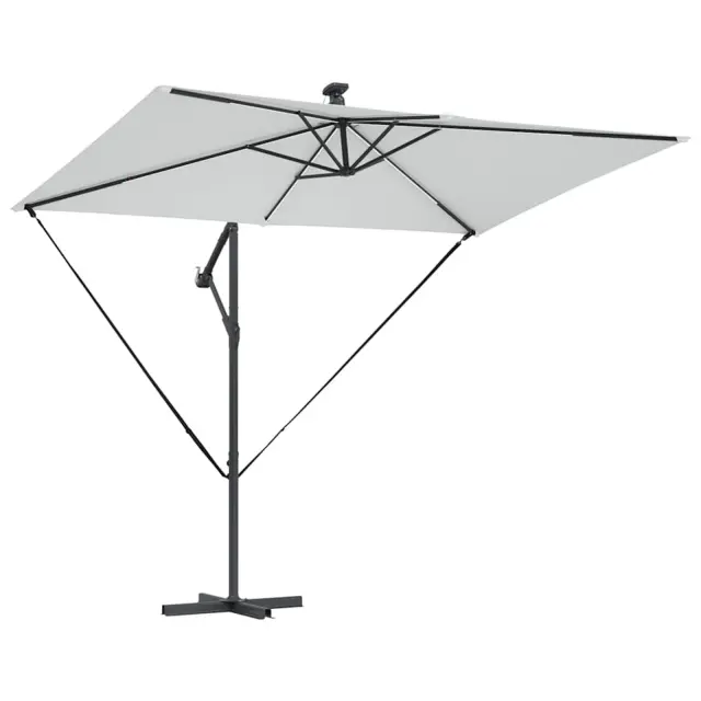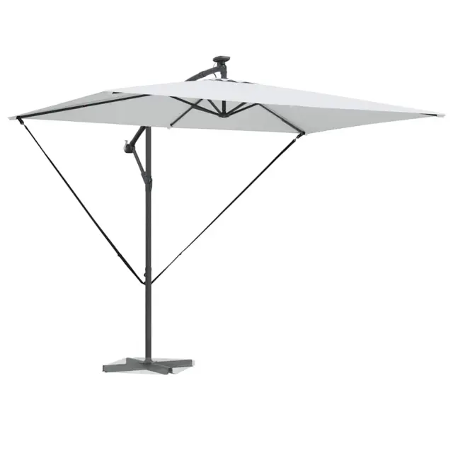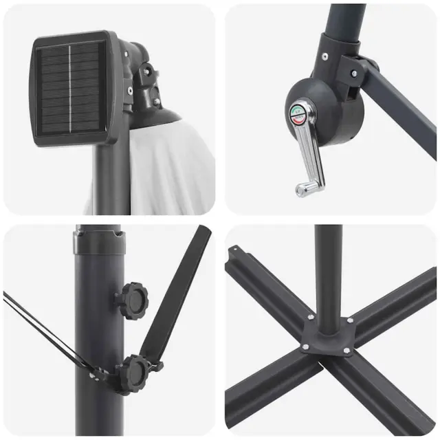 • Integrirane funkcije: Opremljen z LED trakovi, dežnik podaljšuje uporabo tudi ponoči. Solarni trakovi ustvarjajo prijetno vzdušje ob večerih ter subtilno osvetljujejo prostor, hkrati pa poudarjajo eleganten dizajn.