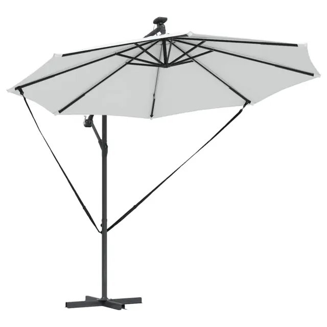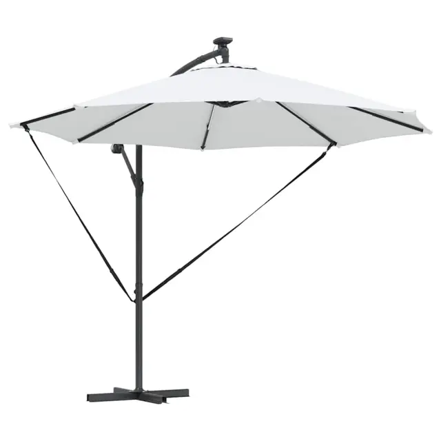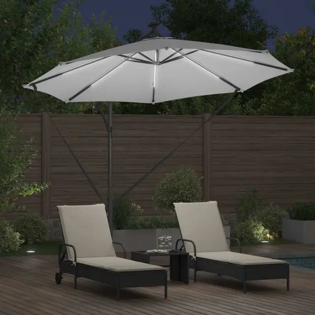 • LED osvetlitev: Ta senčnik ima energijsko varčne LED luči, ki jih napaja sončna energija. Osvetlitev vnese pridih elegance in je odlična za večerna druženja.