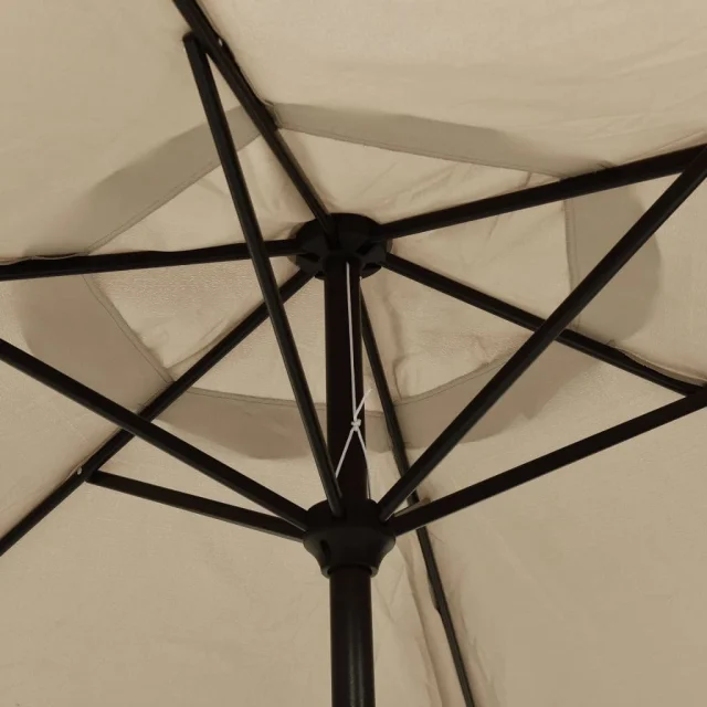Zahvaljujoč ročici in nagibnemu dizajnu je ta senčnik zložljiv in prenosen. Senčna ponjava je izdelana iz poliestra, ki zagotavlja UV zaščito in ne bledi, ter zagotavlja optimalno zaščito pred soncem. Robusten aluminijast drog s prašnim premazom ter šestimi kovinskimi podporniki zagotavlja trdnost in izjemno vzdržljivost, da vam bo ta senčnik služil še dolgo.