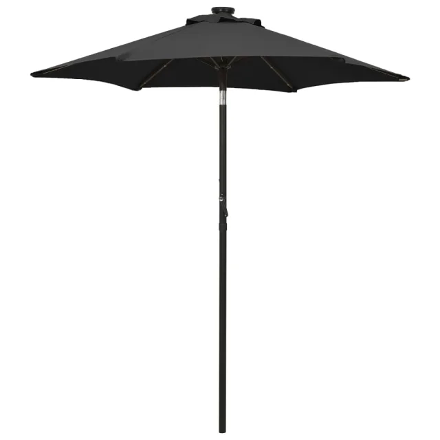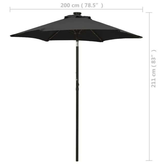 Zahvaljujoč ročici in nagibnemu dizajnu je ta senčnik zložljiv in prenosen. Senčna ponjava je izdelana iz poliestra, ki zagotavlja UV zaščito in optimalno zaščito pred soncem ter ne bledi. Robusten aluminijast drog s prašnim premazom ter šestimi kovinskimi podporniki zagotavlja trdnost in izjemno vzdržljivost, da vam bo ta senčnik služil še dolgo. Senčnik ima 12 LED lučk, ki osvetljujejo vaš bivalni prostor ter po zahodu sonca ustvarjajo prijetno in romantično vzdušje.