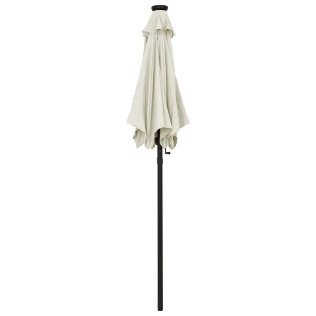 Zahvaljujoč ročici in nagibnemu dizajnu je ta senčnik zložljiv in prenosen. Senčna ponjava je izdelana iz poliestra, ki zagotavlja UV zaščito in optimalno zaščito pred soncem ter ne bledi. Robusten aluminijast drog s prašnim premazom ter šestimi kovinskimi podporniki zagotavlja trdnost in izjemno vzdržljivost, da vam bo ta senčnik služil še dolgo. Senčnik ima 12 LED lučk, ki osvetljujejo vaš bivalni prostor ter po zahodu sonca ustvarjajo prijetno in romantično vzdušje.
