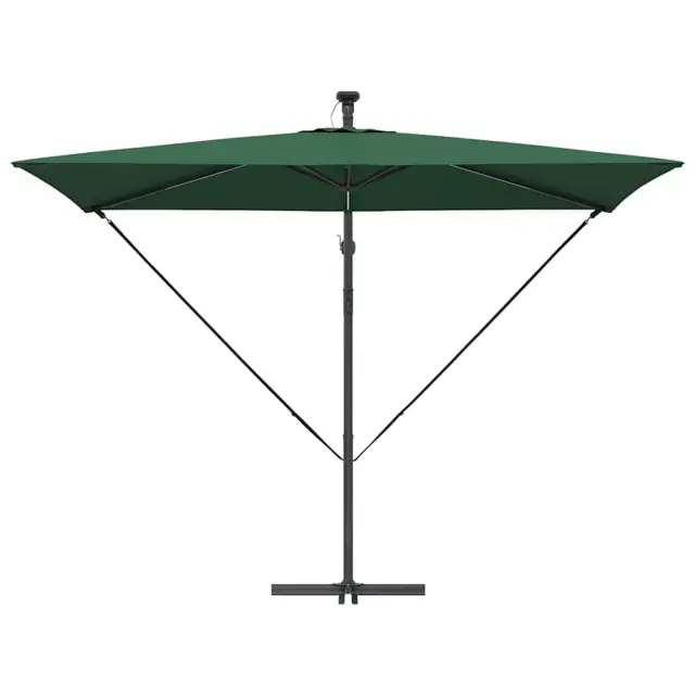 • Integrirane funkcije: Opremljen z LED trakovi, dežnik podaljšuje uporabo tudi ponoči. Solarni trakovi ustvarjajo prijetno vzdušje ob večerih ter subtilno osvetljujejo prostor, hkrati pa poudarjajo eleganten dizajn.