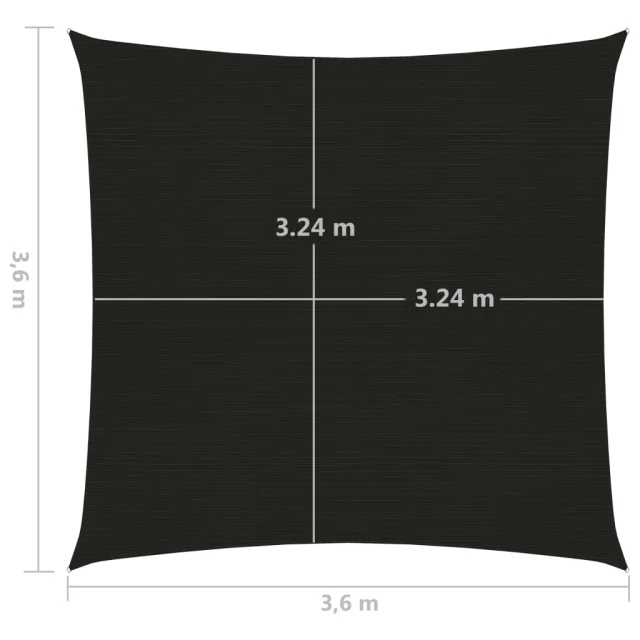 vidaXL Senčno jadro 160 g/m² črno 3,6x3,6 m HDPE