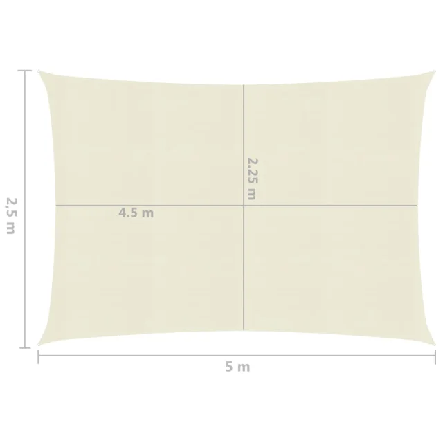 vidaXL Senčno jadro 160 g/m² krem 2,5x5 m HDPE