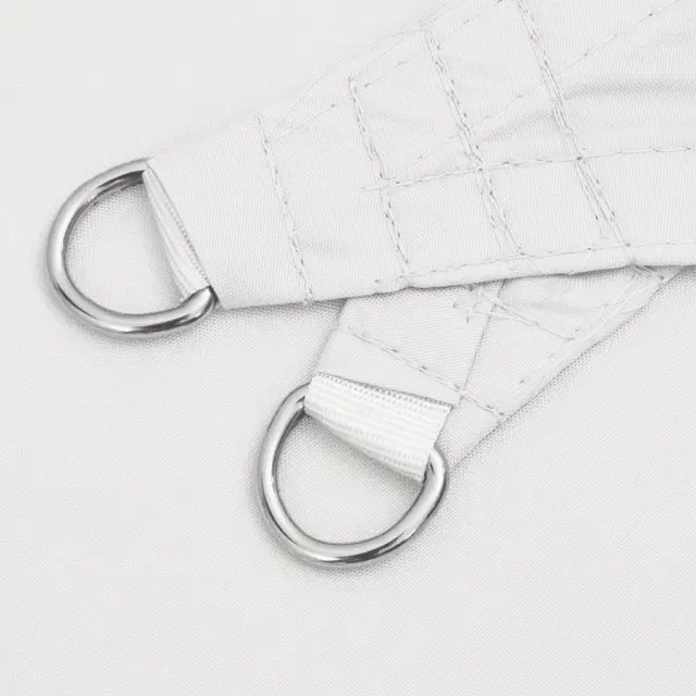 To senčno jadro ščiti pred soncem, vetrom in dežjem ter vam zagotavlja udobje in senco na prostem. Trajno in robustno: Zaradi svoje vodoodpornosti in odpornosti na UV žarke je senčno jadro izdelano iz 100-odstotnega poliestrskega oksforda s PU premazom, da bo vaši družini in prijateljem udobno v senci.Enostavna uporaba: Senčno jadro ima na vsakem vogalu trpežne D obročke, ki so odporni proti rjavenju. Brez težav ga lahko pritrdite z vrvmi ali kompleti za pritrditev.Enostavno shranjevanje: Senčno jadro se priročno zloži, zato ga je enostavno shraniti ali vzeti s seboj na kampiranje, piknike, počitnice na plaži in drugo.Široka uporaba: Senčno jadro se lahko uporablja na vrtu, terasi, ob bazenu, na dvorišču in v drugih zunanjih prostorih. Popolno je za ustvarjanje začasne sence. Dobro je vedeti:Priporočamo, da senčno jadro namestite od zgoraj navzdol, saj potrebuje določen kot za odvajanje dežja in preprečitev poškodb izdelka zaradi prevelike količine vode.Barva: BelaMaterial: 100 % poliesterski oxford s PU prevlekoVelikost: 7 x 5 x 5 mNotranja višina: 3,43 mDolžina vrvi: 1,5 mOblika: TrikotnaOdporno na vodo in UVPrekrivanje na vogalu 4001005