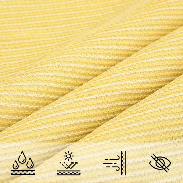 Senčno jadro je narejeno iz 100% HDPE (polietilen visoke gostote) materiala, zato vas bo zaščitilo pred neposredno sončno svetlobo, poleg tega pa bo vseeno omogočilo pretok vetra in vode. Material HDPE je obdelan, zato je odporen na plesen in UV.