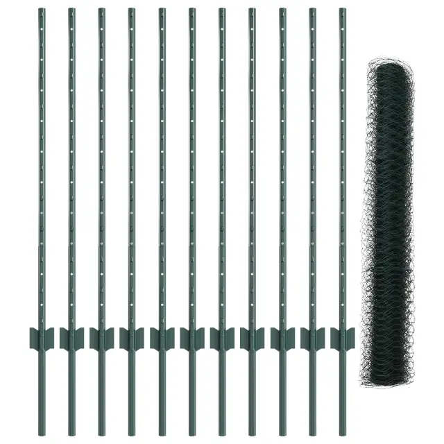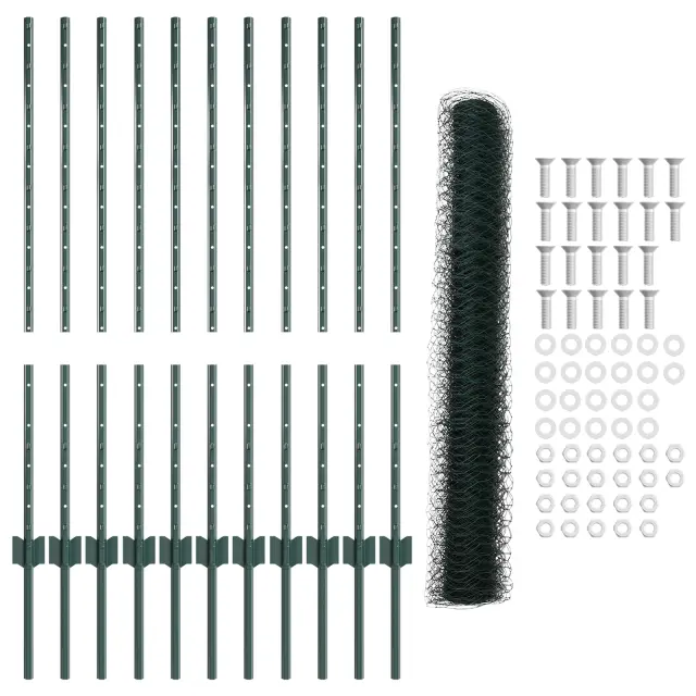Ta set zelene barvane šesterokotne vrtne ograje izboljša vaše zunanje prostore s trdno zgradbo in praktično uporabo. Je nujna pridobitev za vsak vrt ali dvorišče; ne le, da izgleda dobro, ampak tudi zagotavlja varno mejo za hišne ljubljenčke in otroke, kar vašim nepremičninam daje urejen videz.