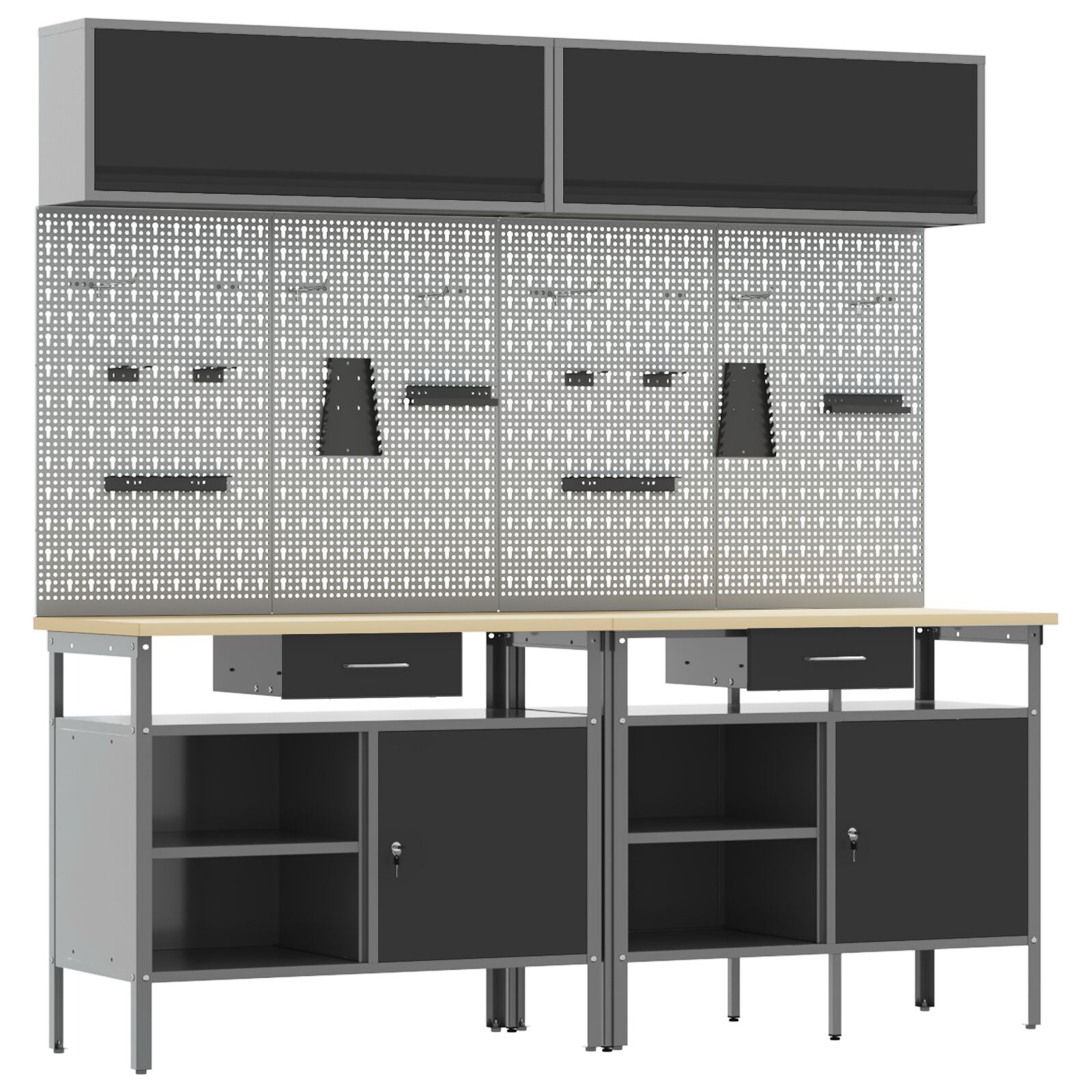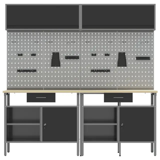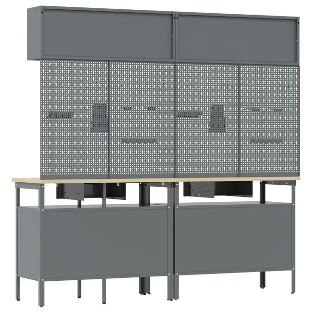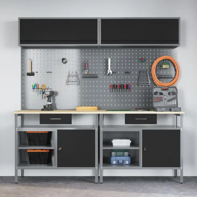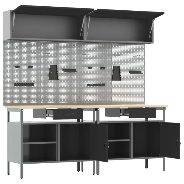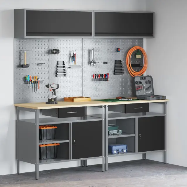 Ta industrijski komplet za shranjevanje orodij z zidno ploščo je prava izbira za tvoje delovno okolje. Združuje eleganco in funkcionalnost za vsakogar, ki ima rad DIY ali je profesionalec. S svojim stilskim mat sivim zaključkom je praktičen in hkrati izboljšuje izgled tvoje delavnice ali garaže. Ohranja tvoje orodje dostopno in urejeno, s čimer ustvarja moderno veselje.