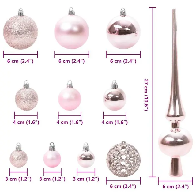 vidaXL Set božičnih okraskov med 150 LED 61 pcs Roza Plastika