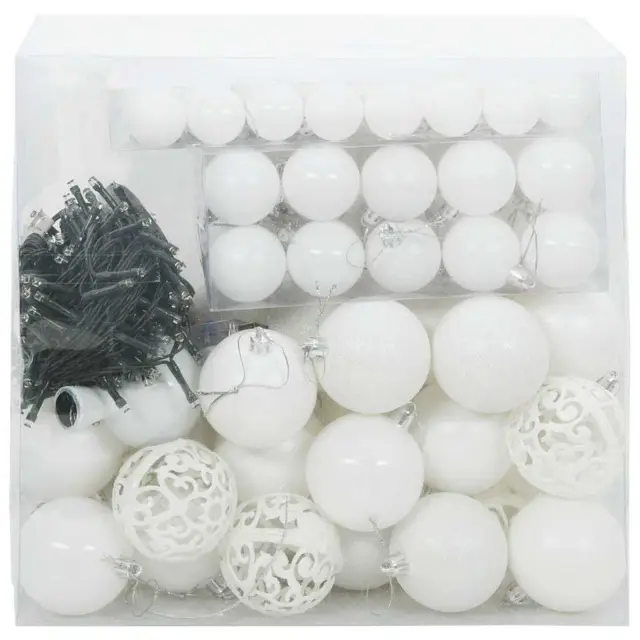 vidaXL Set božičnih okraskov med 300 LED 120 pcs Bela Plastika