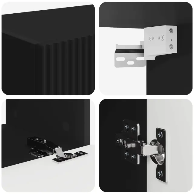 • Funkcionalna vrata s 90° tečaji: Vrata se odpirajo pod kotom 90°, kar olajša dostop do predalov. Tečaji so zasnovani tako, da ohranjajo čiste linije omarice, kar optimizira uporabnost in estetiko. Ta funkcija je idealna za urejen videz in enostaven dostop do shranjenih predmetov.