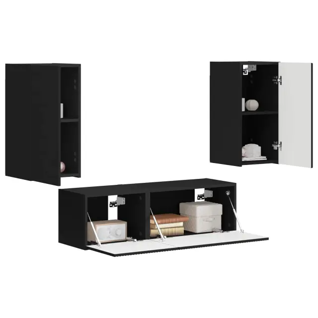 vidaXL Set omare za televizijo na steni 4 pcs Črna Konstruiran les