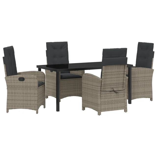 vidaXL set vrtnarske jedilnice z blazinami sive poli ratana