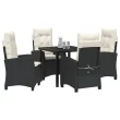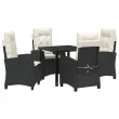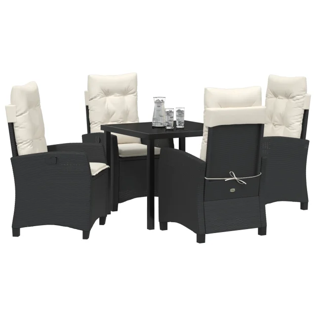 vidaXL Set vrtnarskih jedilnih stolov s blazinami Črni poli ratan
