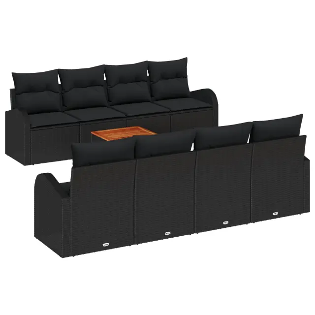Ta 9-delni set vrtnih sofe dvigne zunanjo zabavo na višji nivo s svojo moderno in minimalistično zasnovo - idealno za vrtove, balkone ali terase. Sijajna črna zunanjost mu daje klasičen pridih in ga spremeni v udobno in elegantno mesto za lenarjenje ali druženje.