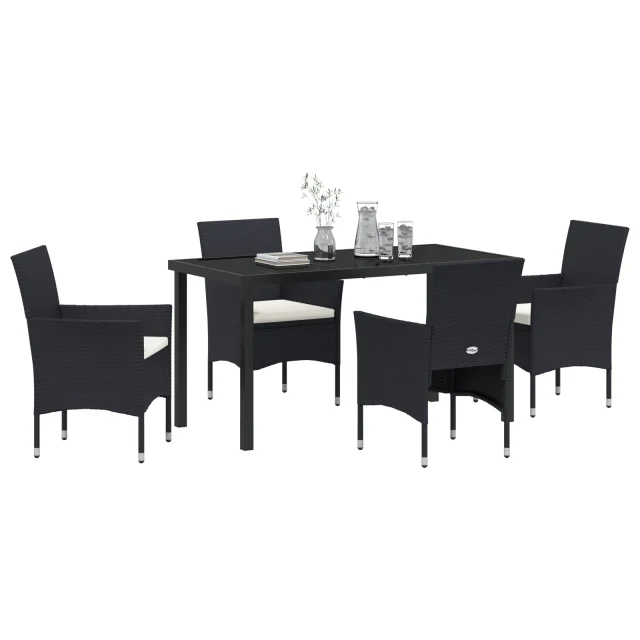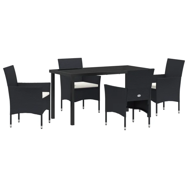 vidaXL set za jedilnico na vrtu 5-delni črni poli ratan