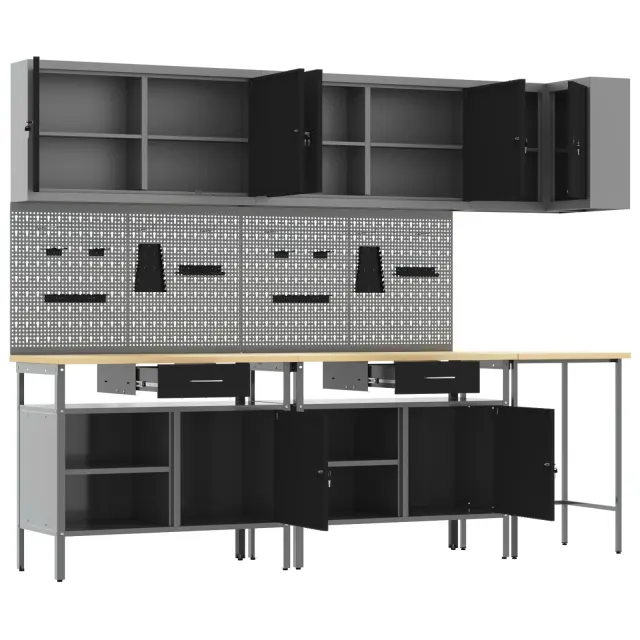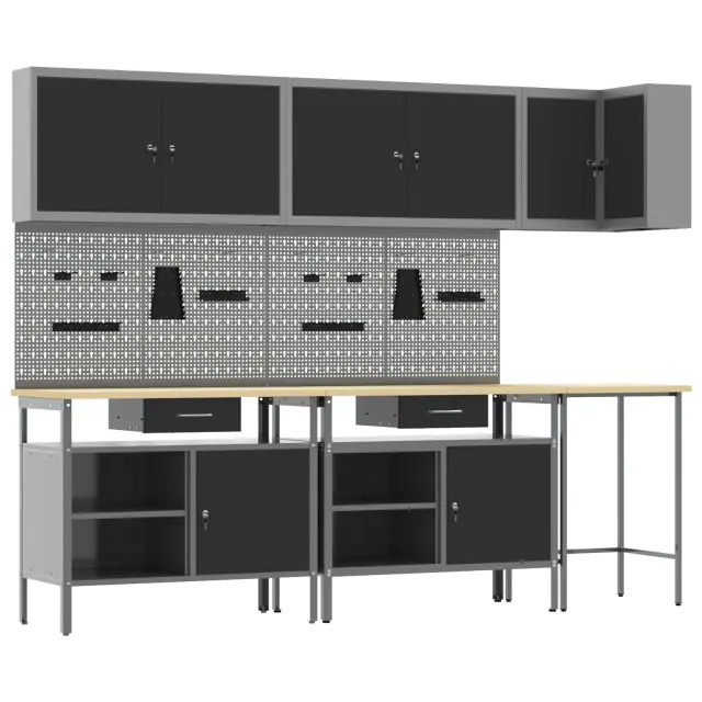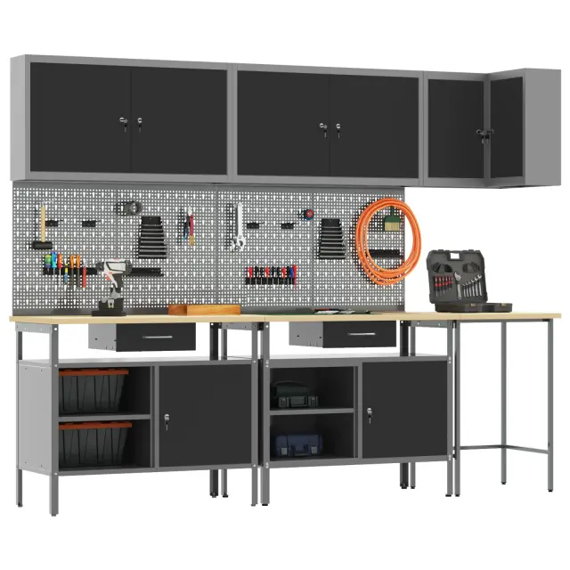 Ta kul miza v industrijskem slogu združuje funkcionalnost in stil. Popolna je za vsako delavnico ali garažo. Z robustno jekleno konstrukcijo in lesnim videzom ne le zagotavlja trden delovni prostor, ampak tudi izboljša izgled tvoje lokacije, saj se ujema z različnimi vzdušji.