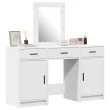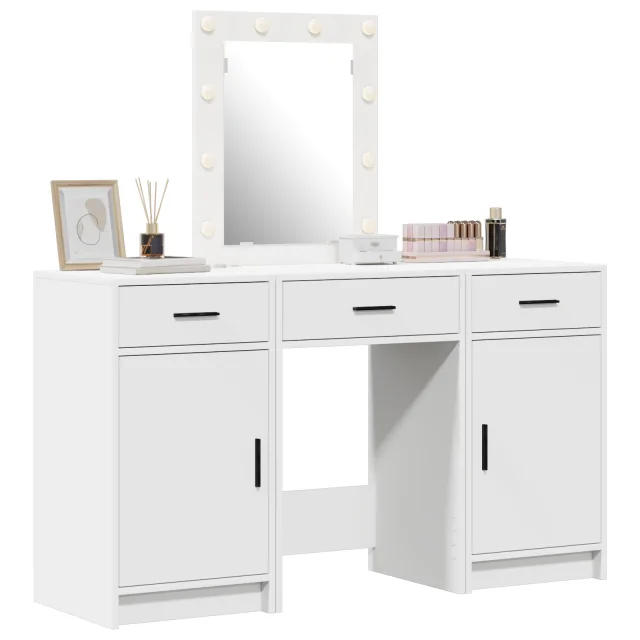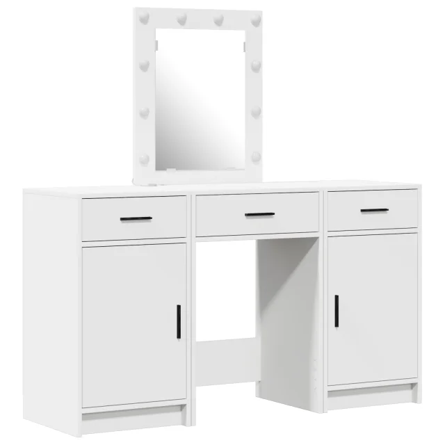 Ta set toaletnih miz je stilna in funkcionalna izbira za vsako spalnico. Narejen iz belega inženirskega lesa in z elegantnim ogledalom, je idealno mesto za tvoje ličila in nego. Moderna oblika in funkcionalne lastnosti ti ponujajo privlačen, a učinkovit način za tvojo lepotno rutino.