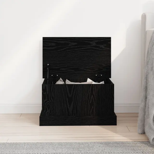 Ta pravokotna škatla za shranjevanje iz inženirskega lesa s črno hrastovo obdelavo združuje funkcionalnost in stil. Njena minimalistična zasnova se super poda v vsako dnevno sobo, spalnico ali domačo pisarno, ponuja elegantno rešitev za tvoje potrebe po shranjevanju in izboljšuje tvojo dekoracijo.