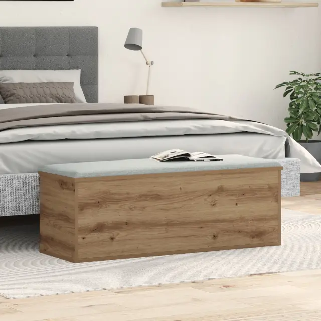 Ta artisan hrastova škatla ima moden, eleganten dizajn, ki lahko popestri vsako sobo in je hkrati super praktična. Narejena je iz trdnih materialov, kar jo dela odličen izdelek za organizacijo tvojih stvari. Njena bogata rjava barva in teksturirana konča se lepše prilegata sodobnemu dekorju, prinašata pa tudi toplino v tvoj prostor. Z dimenzijami 102 x 35 x 35 cm se lahko prilega tudi v ožje prostore, kar ti pomaga, da pametno izkoristiš vsak kotiček svojega doma.