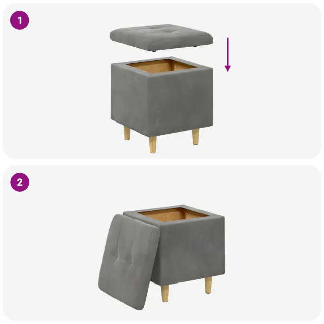 • Vzdrževanje in Nega: Da ohranite njeno prvotno stanje, pogosto posesajte oblazinjeni vrh. To enostavno vzdrževanje skrbi, da tkanina ostane brez prahu in drugih drobcev ter ohranja izgled otomane skozi čas.