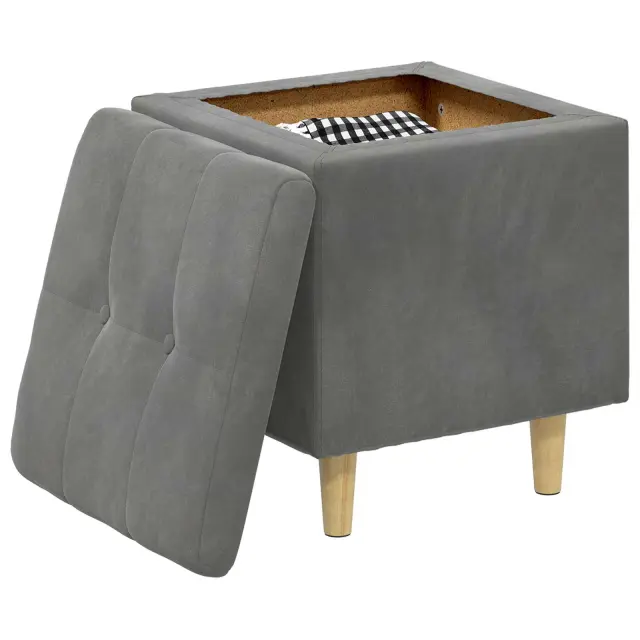 • Elegantna Oblika S Gumbi: Otomana ima oblazinjen vrh z gumbi, kar prinaša sofisticiranost in teksturo. Ta podrobnost dodatno obogati njen sodoben stil, medtem ko tkanina ohranja udobje skozi čas. Gumbi ustvarjajo lepe depresije, ki dodajo še dodatno eleganco in ohranjajo obliko blazine.