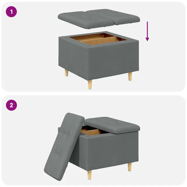• Vzdrževanje in Nega: Da ohranite njeno prvotno stanje, pogosto posesajte oblazinjeni vrh. To enostavno vzdrževanje skrbi, da tkanina ostane brez prahu in drugih drobcev ter ohranja izgled otomane skozi čas.