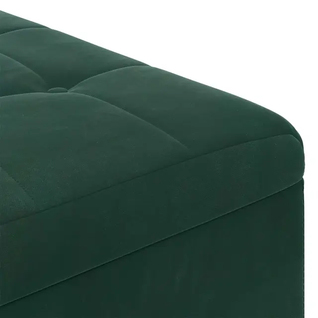 • Elegantna Oblika S Gumbi: Otomana ima oblazinjen vrh z gumbi, kar prinaša sofisticiranost in teksturo. Ta podrobnost dodatno obogati njen sodoben stil, medtem ko tkanina ohranja udobje skozi čas. Gumbi ustvarjajo lepe depresije, ki dodajo še dodatno eleganco in ohranjajo obliko blazine.