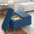 vidaXL Shranjevalna tabureta z blazino Modra 80 x 80 x 45 cm blago