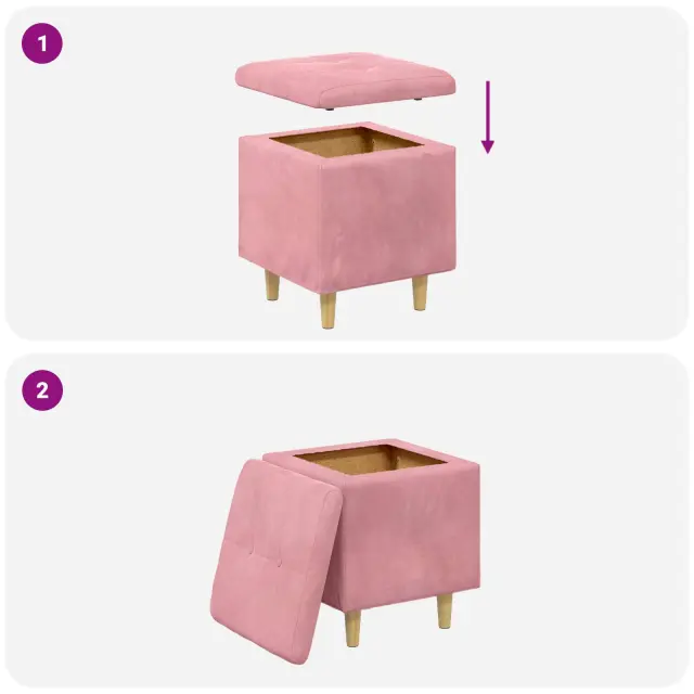 vidaXL Shranjevalna tabureta z blazino Roza 40 x 40 x 45 cm Žamet
