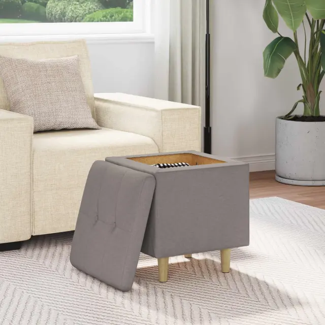 vidaXL Shranjevalna tabureta z blazino Taupe 40 x 40 x 45 cm blago