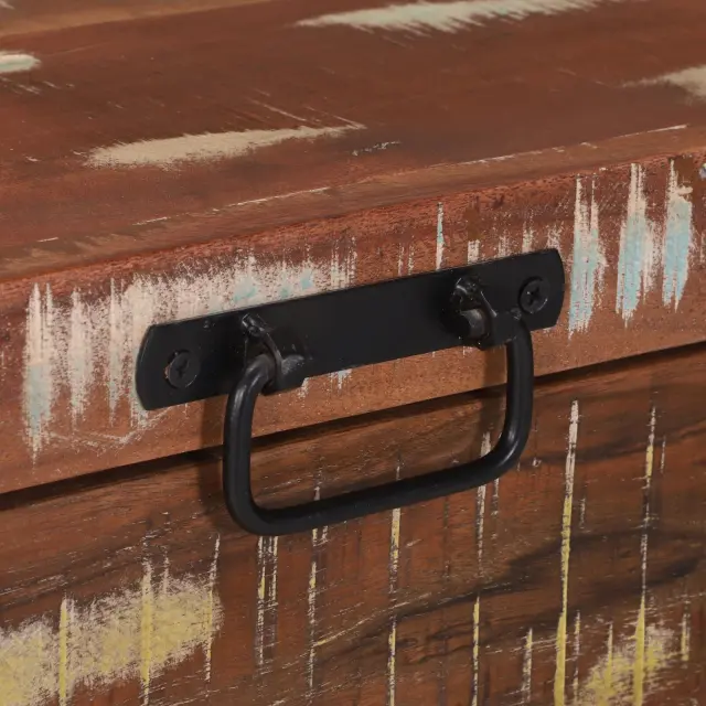 Ta shranjevalna škatla kombinira funkcionalnost z edinstvenim rustikalnim izgledom. Narejena iz močnega recikliranega lesa in črnega kovinskega okvira, je priročna za shranjevanje in služi kot udarna točka tvojega dnevnega prostora.
