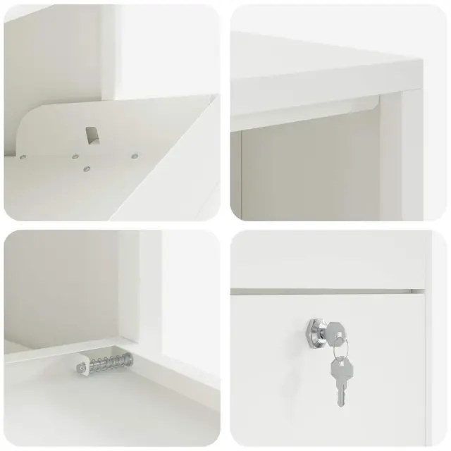• Integrirane shranjevalne funkcije: Ima veliko shranjevalnega prostora, kar pomeni, da lahko ta poštni nabiralnik enostavno shrani različne pakete na varno. Prostorna notranjost skrbi, da vaši paketi ostanejo varni, dokler jih ne boste prevzeli. Njena preprosta zasnova omogoča enostaven dostop, kar vam daje mir, ko prihajajo štiri dostave hkrati.