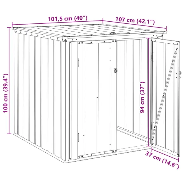 vidaXL Škatla za shranjevanje v vrtu Črna 101,5 x 107 x 100 cm Jeklo