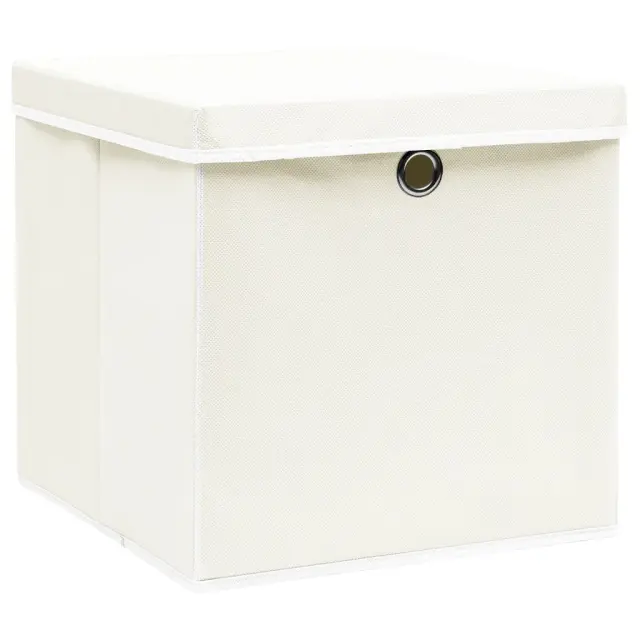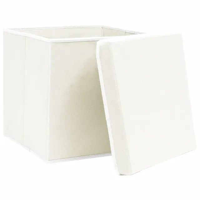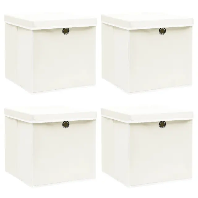 vidaXL Škatle za shranjevanje s pokrovi 4 kosi bele 32x32x32 cm blago