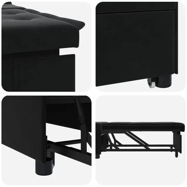 Ta moderna sofa postelja združuje funkcionalnost in stil, ponuja mehak žametni videz, ki se lahko zlahka preobrazi iz sedeža v posteljo. Z elegantno, pravokotno obliko in minimalističnim dizajnom se spremlja s sodobnim slogom ter postane osrednji del vsakega dnevnega prostora. Ta zložljiva izbira je primerna za vsakodnevno uživanje in sprejem gostov ponoči.