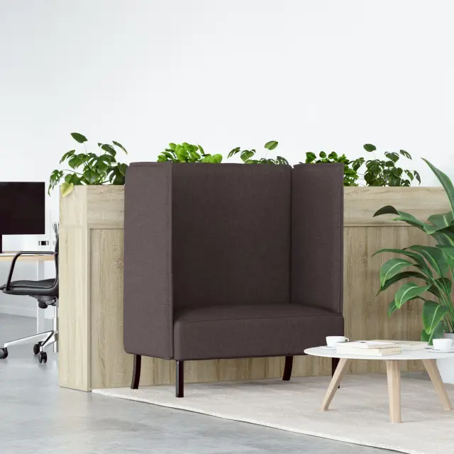 Ta vogalna sofa ima čisto in trendovsko zasnovo. Temno rjava tkanina doda pridih elegance vsakemu dnevnemu prostoru ali pisarniškemu salonu. Popolna je za sproščanje ali druženje s prijatli; udobna blazina spodbuja sprostitev, hkrati pa ohranja minimalističen in eleganten videz.