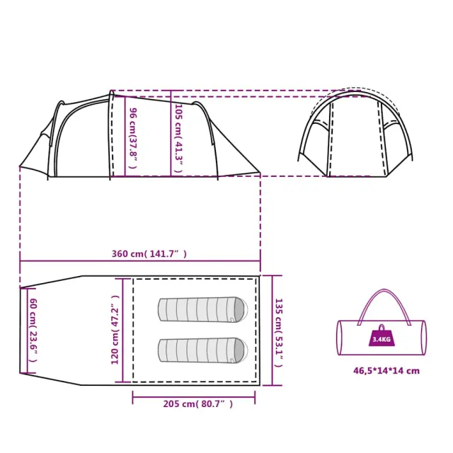 vidaXL Šotor za kampiranje za 2 osebi zelen vodoodporen