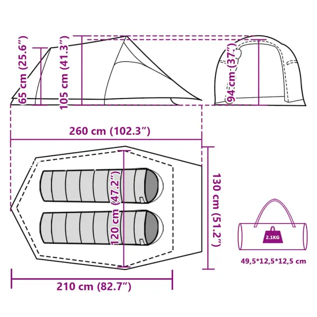 vidaXL Šotor za kampiranje za 2 osebi zelen vodoodporen