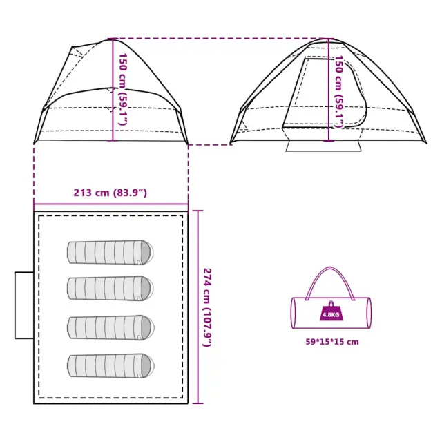 vidaXL Šotor za kampiranje za 4 osebe zelen vodoodporen