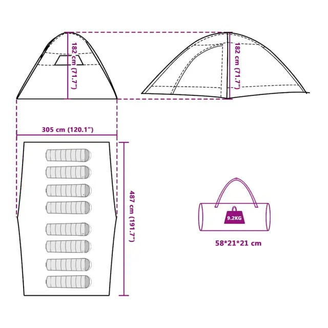 vidaXL Šotor za kampiranje za 8 oseb zelen vodoodporen