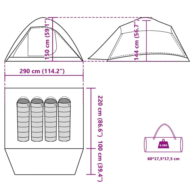 vidaXL Šotor za kampiranje za 4 osebe zelen vodoodporen
