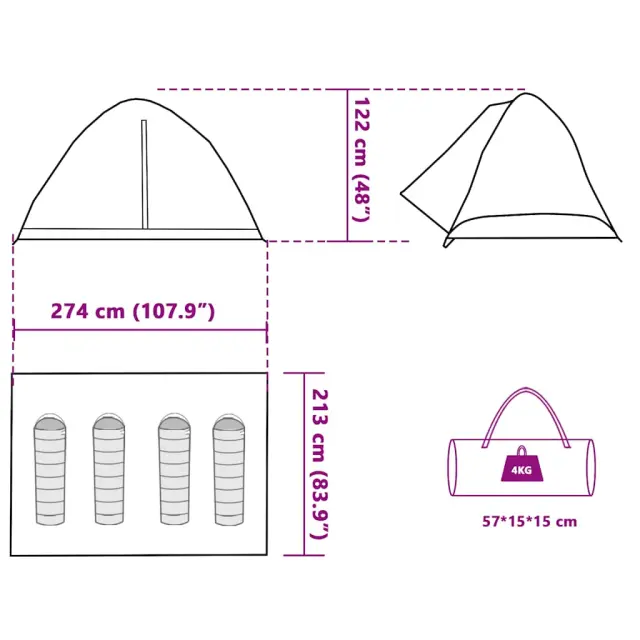 vidaXL Šotor za kampiranje za 4 osebe zelen vodoodporen