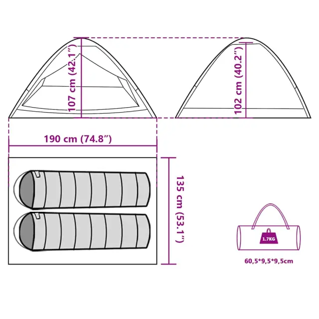 vidaXL Šotor za kampiranje za 2 osebi zelen vodoodporen