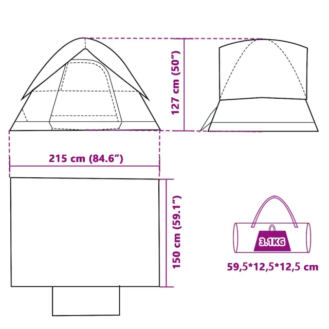 vidaXL Šotor za kampiranje za 2 osebi zelen vodoodporen