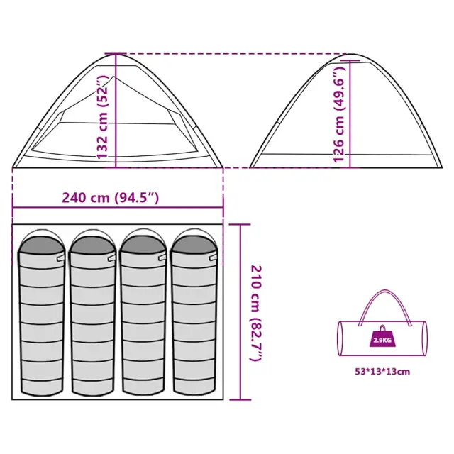 vidaXL Šotor za kampiranje za 4 osebe zelen vodoodporen