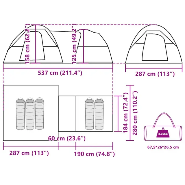vidaXL Šotor za kampiranje za 5 oseb siv in oranžen vodoodporen